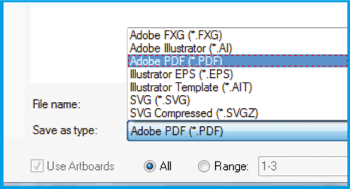 .Enregistrez le document dans et sélectionnez le format ..